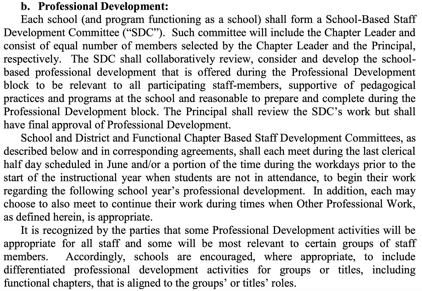 Contract says to differentiate PD for staff. Not everyone should get the same PD every week (Article 6).